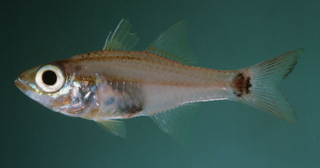 Apogon caudicinctus.- Los machos pueden alcanzar los 6,4 cm de longitud total.