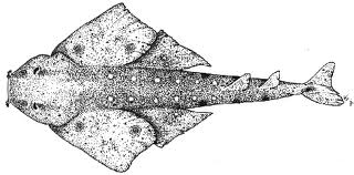 Squatina albipunctata (80 cm) Angelote del Este.- Es una especie de elasmobranquio escuatiniforme de la familia Squatinidae.