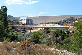 Embalse de Loriguilla. El embalse de Loriguilla, terminado en el año 1965, se localiza en la cuenca del río Turia, entre los términos municipales de Chulilla y Loriguilla, a 63 km de la ciudad de Valencia, en la provincia de Valencia, Comunidad Valenciana, España. El embalse ocupa una superficie máxima de 364 ha y con una capacidad máxima de 71 hm³. Su construcción obligó a desplazar a otras ubicaciones las localidades de Loriguilla y Domeño, cuyas tierras más fértiles quedarían bajo las aguas.